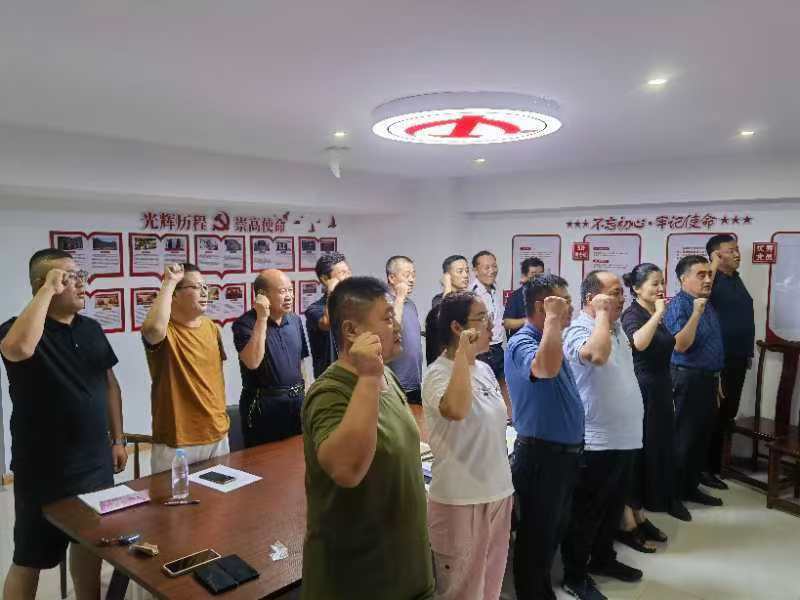 在庄重的氛围里,两位新预备党员在书记刘昌清的引领下对党旗宣誓,展现对党的忠诚和为共产主义奋斗的决心。全体党员亦在书记带领下共同宣誓,誓言铿锵,彰显坚定信念,不忘初心,牢记使命,为党的事业不懈努力,砥砺前行。